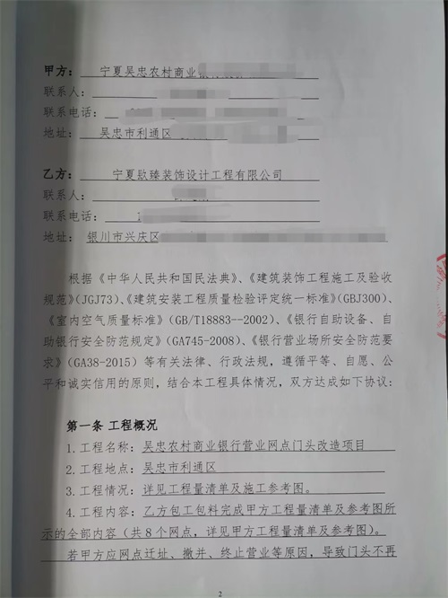 | 吳忠市商業銀行裝修項目簽約镹臻裝飾,合作愉快! |