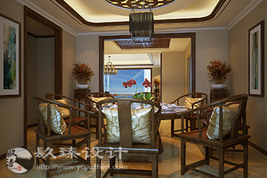 在餐廳設計中,用簡約,利落的中式風格,向您闡述一種溫馨而安逸的風格,木質餐桌椅、大理石地磚、壁紙以及時尚掛畫,再配合簡單天花以及造型吊頂,更能給餐廳增加不少的韻味。而且開放式的餐廳對面就是廚房,廚房隔著一面之墻的是衛生間,近看餐桌,桌上放著一瓶花來裝飾,墻上掛了幅畫。明亮的鏡面墻充滿創意,也提升了廚房的亮度。在臥室設計中,整體色調又簡潔明朗,又把現代簡約的風格完美詮釋出來,木質地面讓人居住更加舒適,米黃色壁紙能夠彰顯溫馨,再加上簡單的天花配合造型吊燈,讓整室顯得簡單而又質樸。
